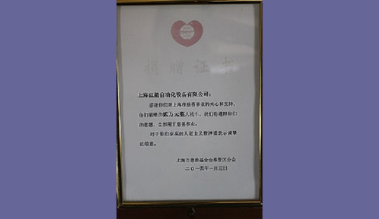 2014年,上海紅箭自動化設(shè)備有限公司為上海市慈善基金會捐款